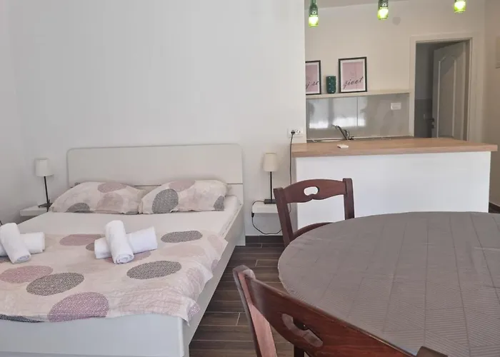 El apartamento ofrece comodidades de autoservicio, como una cocina y una una zona de comedor para mayor comodidad de los huéspedes. El restaurante Bistro Pizzeria Dino sirve platos de la cocina europea y se encuentra cerca de este apartamento. La estación de autobuses Hotel Mediteran está a unos 10 minutos andando del Apartamento Studio Raven.